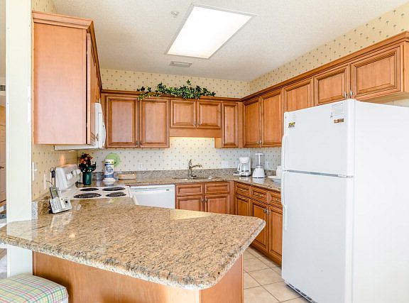 First floor 10' ceiling premium unit; park within 2 ft of your front door. All tile unit; no carpets to clean; one of the few one and one half bath units; upgraded kitchen cabinets with granite. Custom window coverings and light fixtures. Great rental history; Only one owner ; $35,000 last year and over $36,000 in 2015 with owner use over 2 weeks in summer. Walk right out patio door to pool and beach; no elevators; no crowds. NEW Sliding glass doors