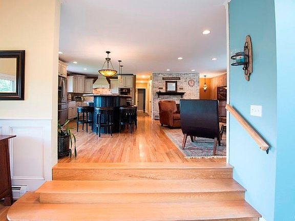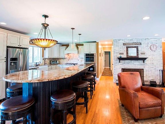 Exquisite 4 BR ranch open floor plan and a short distance from schools and village. It offers an open floor plan, amazing kitchen, granite, 6 burner stove, double ovens, island with breakfast bar and prep copper sink, stainless steel appliances, tiled back splash, DR has detailed moldings slider to deck over looking yard, family room with built in t.v shelves wood burning FP. Three ample sized bedrooms with hardwoods and nice sized closets, full bath with marble floor tiled shower. Master bedroom suite California closets, private bath, tiled shower with marble insets and jet tub, travertine tiled floor, granite single vanity. Partial finished walk out with travertine floors, family room, gas FP, full bath, workout area. Sliders to a stamped concrete patio. Partial fenced private yard.