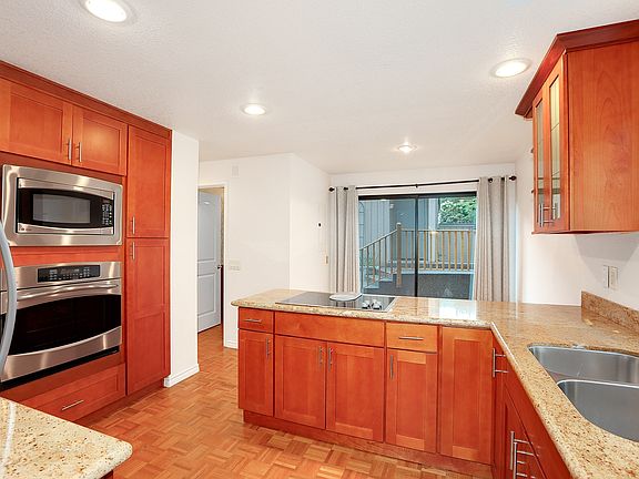 Beautiful & tranquil Kennydale townhouse w/attached private deck, courtyard entrance & 2 car garage! Remodeled unit including open floor concept, all real hardwood flooring, new windows & sliding doors, new carpet, new paint, new stairs and railing and updated powder room. Chef's delight remodeled kitchen w/slab granite counters, cherry finish cabinets, under mount sink, stainless steel appliances & casual eating space. Formal living & dining rms w/access to your deck, w/wd burning F/P, built ins, crown molding & high ceilings. Master suite w/luxuriously remodeled 5-pc bath & 2 closets! PRIME location close to shopping, restaurants, & Hwy 405 for an easy commute!