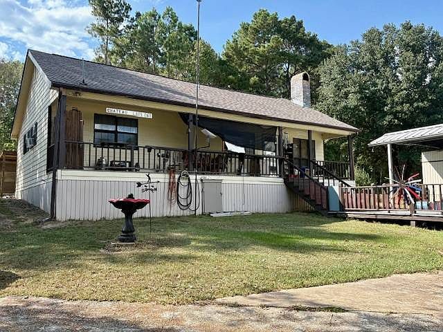 AFFORDABLE..... Waterfront Camp with Guest Quarters on Toledo Bend!!! This two-bedroom, two-bath waterfront camp offers the perfect getaway and comes partially furnished. The cozy living area features a wood-burning fireplace, while the primary suite includes a private bath and walk-in closet. Enjoy peaceful mornings on the covered front porch, perfect for rocking chairs and coffee. For family and friends, the property also includes guest quarters with two bedrooms and two baths. Outdoor amenities abound with three metal carport/boat sheds, a 24x30 shop with two roll-up doors, and a partially fenced yard. Fishermen will love the private boat launch, boat shed, and fish cleaning station. Located just across the road from the main lake, this waterfront property provides direct access to all that Toledo Bend has to offer.