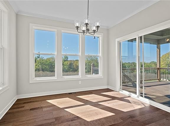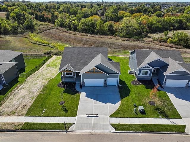 Just finished, this maintenance-provided Cypress reverse 1.5 story rests on one of the best walkout home sites in Lee's Summit! Backing to so much greenspace and with premier sunset views, you will find yourself spending a lot more time enjoying privacy and the covered deck while lawn care, snow removal, and seasonal irrigation tasks are taken care of for you. There's even additional space on one side for extra elbow room. An oversized primary suite is located opposite the other three bedrooms for quiet privacy. With a main living area that connects guests and family from all points, the home features designer touches like a stone fireplace with floating mantel, lever door handles throughout, custom hood over gas range, built-in microwave, high-grade designer tile and quartz countertops, crown trim throughout, designer lighting upgrades everywhere, and an extra thick carpet pad to keep things cozy under foot. The walkout lower level provides beds three and four, a 3rd full bath with tiled shower surround, and a beautiful wall bar with sink and beverage fridge to keep drinks and snacks close while you relax in the large rec room or on the lower patio. LED lighting, low-VOC paints, low-E heat-reflecting windows, whole home humidifier, sealed sump pump, post-construction duct cleaning, and an active radon mitigation system are just some of the energy efficient and healthy home advantages included. Annual dues also apply. Hawthorn Ridge provides one of the most peaceful settings in Lee's Summit. Less than 6 minutes to dining, grocery, retail, & services, Hawthorn Ridge provides homeowners with one of the best community pools in the city, a clubhouse featuring big screen TV and surround stereo system, covered patio with gas grill, a basketball hoop, a playground and trash/recycling service too. Enjoy all that NEW has to offer in this secluded enclave - all without the size, traffic & noise distractions typically found elsewhere.