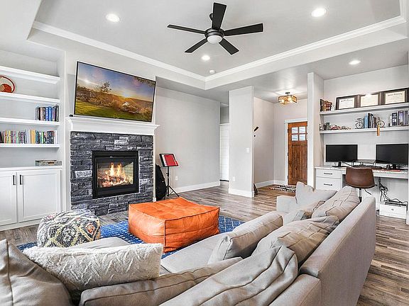 Newer home built in 2019 and well cared for! Quaint and energy efficient home with four bedrooms, including spacious master suite with walk-in closet and large shower with dual shower heads. Upgraded granite countertops throughout. LVP and carpet flooring. Some add-on features of this home include, build-in workspace with granite countertop and office drawers, a custom built-in bookshelf, mudroom with cubbies for five, and walk-in pantry off the kitchen. Generous 3-car garage with accent wood wall provide lots of room for bikes and gear! It’s located walking distance from Pillar Falls Elementary and a short bike ride to the Canyon Rim trail system. Enjoy the added privacy with this unique lot that has no back neighbor and is lined with tall pines.