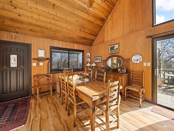 If you are looking for a vacation/retreat home or a cozy place to call your own, you've come to the right place! What a beautiful place to experience abundant wildlife, gorgeous scenery and 4 seasons! Rock formations, oak, pine and cedar trees adorn the lot. The large living room has a fireplace and lots of windows to view the scenery. There is an ample sized dining area and the kitchen has a small breakfast area and breakfast bar. The primary bedroom and main bath are also on the main floor. Upstairs, there is a large loft style bedroom that can easily accommodate multiple sleeping areas. New laminate flooring and carpeting throughout and new interior and exterior paint. Enjoy morning coffee or an evening glass of wine from one our 5 award wining vineyards on the wrap around deck which is made of a composite product for durability. There is a carport style garage with a 1/2 bath located next to it, carport and room for an RV.