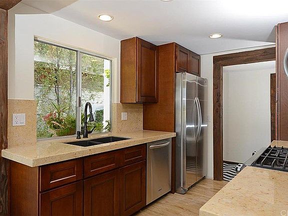 Absolutely beautiful 3-Bed 2-Bath home on one of the best cul-de-sac streets in the area. Breathtaking Panoramic views of the Saddleback mountains, hills, trees, city lights. Incredible sunsets!. Completely remodeled with the finest touches. Custom glass and mahogany doors throughout, Travertine fireplace in living room, stone counters and custom fixtures in kitchen featuring gorgeous custom maple cabinets and Kitchenaide appliances. Both baths totally customized with beautiful granite and marble, added skylights, designer fixtures. Custom flooring throughout. On demand hot water and water conditioner. 2 car garage with epoxy flooring. Outside features flagstone pavers, bubbling fountain, beautiful landscaping and a raised deck to better enjoy the spectacular view. Fully plumbed for future gas BBQ. Don't miss this incredible property! Close to parks, Community pools, clubhouse, trails, and award winning schools! Pets under 25lbs are allowed. Sorry, no large pets.