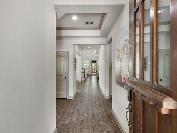 This beautifully crafted Gracepoint Home in Wright’s Landing perfectly balances modern luxury with everyday comfort. Nestled at the end of a quiet cul-de-sac, it welcomes you with a spacious front porch—ideal for morning coffee or evening relaxation. Inside, soaring ceilings up to 20 feet, a statement fireplace, and an open-concept design connect the living, dining, and chef’s kitchen featuring a granite island, gas cooktop, and abundant cabinetry. The plan includes a private study, mudroom, and hidden storage under the stairs. The primary suite offers a spa-inspired bath and oversized walk-in closet, while upstairs features a game room and spacious secondary bedrooms. Additional highlights include wood-look tile flooring, a covered patio, and negotiable wall-mounted TVs. Located near The Woodlands, Grand Parkway, and top-rated Conroe ISD schools, this home blends luxury, lifestyle, and location.