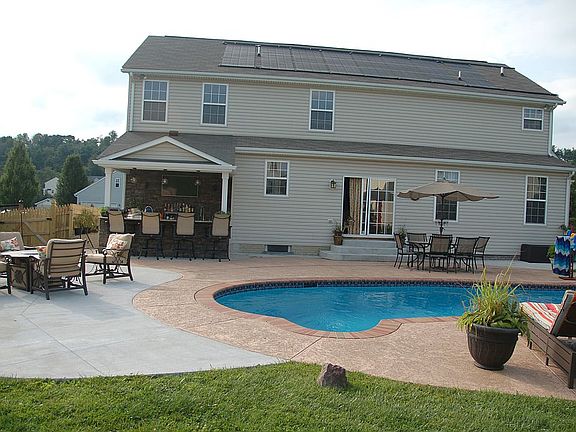 Beautiful vinyl sided 2 story single family home in quiet country development. 5 full sized bedrooms including 400 sq. ft. Master Bedroom with luxury en-suite featuring double undermount sinks in Quartz, travertine heated floor and luxury tiled shower with glass walls looking over a built in Jacuzzi jetted tub. All bedrooms, kitchen, family room and living room have ceiling fans. 3.5 total bathrooms 2 on upper level, 1 in the basement & a half bath on the main level. Dedicated Office\Library on main level. 400 sq. ft. sunken family room with 7.2 theater surround sound built into construction. Travertine tile flooring throughout the entryway and kitchen which has upgraded Maple cabinets including large central island and new stainless appliances complimented with granite counters. Oversized 3 car garage with workbench and storage system including dual automatic door openers. South facing back yard with built in custom form Gunite pool with custom seating & solar heating system as well as an outdoor audio system. Full featured custom outdoor kitchen including Delta Heat Grill, EVO Mongolian BBQ, refrigerator and sink with Granite counter & bar top. Entire house wired for audio & video distribution as well as business grade network & telephone points in every room. Fully finished basement with large open L-Shaped space & separate work out room with washer and gas dryer hookups all with high grade laminate flooring adding over 1000 sq. ft. of living space for a total of over 4000 sq. ft. Recently upgraded variable speed furnace with multi-stage condenser attached to a 12 zone HVAC system including both Humidifier and De-humidifier systems control comfort to precision in every room.