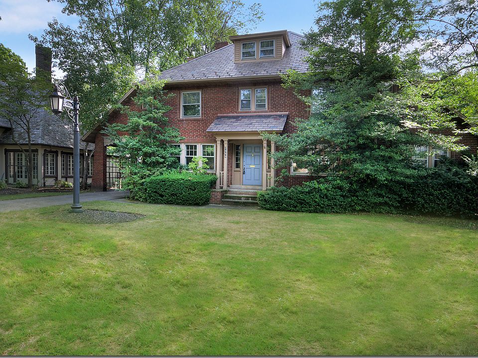Opportunitiy knocks on this quality-built, commanding all brick home on Brighton Rd. For decades, a beloved family home in top Shaker location, this charmer has all the bones and character desired in a beautiful Shaker home. Bring your contractor! Probably one of the prettiest and elegant homes on the street, known for the historic iron street lamp in front yard, saved by our owner, from Rockefeller's historic Forest Hill neighborhood nearby. This solid all-brick home has lots of original character and features to make it your fabulous Shaker home. Bright and inviting living room with fireplace and mantel. Formal dining room. Spacious eat in kitchen with laundry. Sunroom off living room used as den, and door out to oversized deck in back with access to yard. Second floor offers an oversized master suite with dual closets and private bath. Two additional bedrooms and a full bath on second. Third floor offers a wonderful guest or teen suite with spacious bedroom and full bath. Lower level is a full basement for storage. Unique feature of the 'porte cochere' at side door entry, slate roof, detached two car garage and deck. Wonderful opportunity to make it yours, with updates and modernizations for today's creature comforts. Priced to sell for location and overall condition. Will be POS violation free. Top Shaker location, close to RTA, shopping, parks, schools, Shaker Sq., Univ Circle, downtown and more.