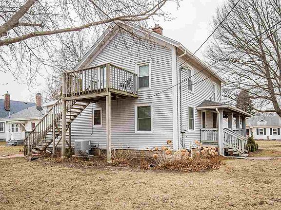 Wonderful Duplex within walking distance to public Elementary school! Originally built as a farmhouse, this now duplex has an amazing wrap around front deck in excellent condition as well as a back deck out to the spacious detached 2 car garage with loft space! Great for extra storage. On street parking available as well. The lower unit offers you a Living Room, Large kitchen with bay window Dining room, 2 bedrooms with hardwood flooring, and a full bath that has a newer vanity. The basement and laundry is accessible in this unit and the washer are dryer are included. The UPPER UNIT has 2 entries, updated flooring and newer kitchen cabinets done about 4 years ago. It currently has a kitchen, family room, bedroom and full bath as well as a 2nd level deck. Originally, the upstairs had 3 bedrooms. This Duplex has updated windows and exterior doors throughout. Siding-'02, Roof-'10, HVAC-'08. All appliances stay, plush Washer/Dryer, but not warranted.