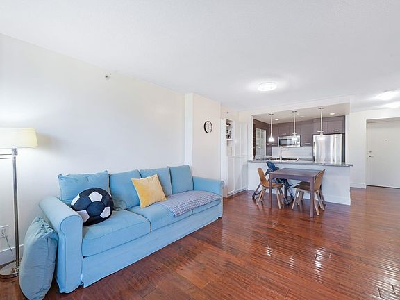 Bright and airy one-bedroom plus den with over 710 sq. ft. of living space. This well-maintained home offers floor-to-ceiling windows, open concept layout, and engineered hardwood floors. The modern kitchen features Bosch stainless steel appliances and granite and marble countertops, while the spacious bedroom has a walk-in closet. The den is perfect for an office or reading nook, and the large balcony is great for relaxing or entertaining. Enjoy Parc's amenities: fitness centre, yoga studio, media room, lounge, wine lockers, and landscaped grounds. Includes 1 parking and 1 storage locker. Steps to Coquitlam Centre, dining, shopping, and the Evergreen Line.