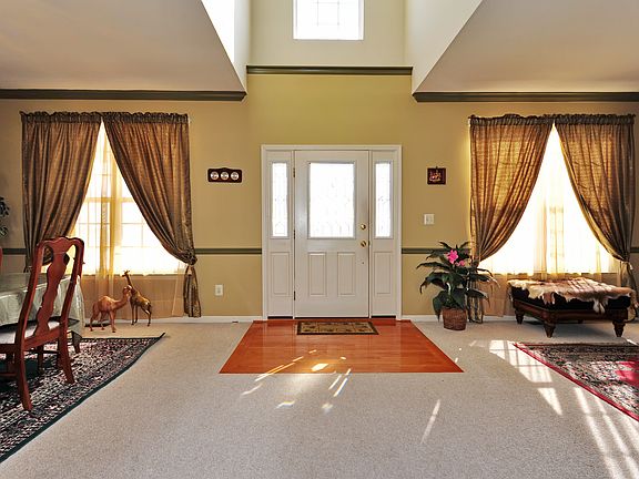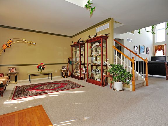 Beatuiful home located in the Bella Vista development! You won't be disappointed in this home. Walk-in to home and your eyes will instantly be drawn to the wall of windows in the 2-story family room! The front of the home has a formal living on the right and opens up the formal living room on the left. Both rooms have chair rails and crown molding to impress. The kitchen and 2-story family room open up to each other and is a great place to gather. The WALL OF WINDOWS has just been freshly painted and surrounds a gas fireplace to draw the eyes to the views. The kitchen has cherry cabinets, CORIAN counter-tops, TILE floors area for a table and sliding glass doors to the deck. The MASTER bedroom has vaulted ceilings and is located on the FIRST FLOOR! The hallway, powder room, master bedroom and master bath have all been freshly painted. Just bring your furniture! The upper level has 3 more bedrooms plus another full bath. The entire upstairs has also been freshly painted with neutral colors. The upper level has open banister that opens up to family room. The FINISHED BASEMENT is another large area for more space. It is big enough to have several areas such as an office AND a playroom. The basement has a storage room as well. House is located at the beginning of the cul-de-sac. House also has a water softener. Make your appointment today!