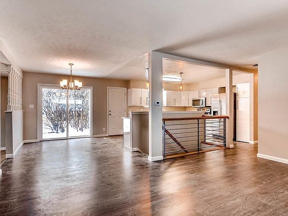 Swanky, spacious 5 bed (2 non-conforming) 3 bath remodel in Bear Valley. Open Floor plan offers tons of natural light. Brand new kitchen with new stainless steel appliances, crisp white quartz counter tops, huge island with wine fridge! This gourmet kitchen is perfect for entertaining. Massive sliding glass doors are ideal for the warmer Colorado days to open and enjoy the outdoor space. Lovely laminate wood floors, designer paint, custom lighting and fresh carpet. Great location! Close to shopping, dining, entertainment and public transit.