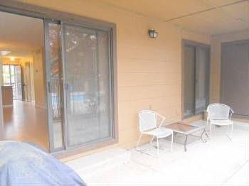 This is very nice end unit that has been upgraded. This two bedroom two bath has laminate flooring, tile counters, newer carpet, newer cabinets, washer, dryer, refrigerator, wood burning fireplace, huge secluded patio. This is a normal sale..