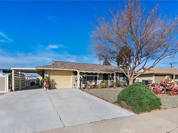 Great Buy! SENIOR 55+ remodeled home on Carmel Rd., a desirable street in the Core of Sun City. This beautiful 1964 Home features; 2 bedrooms, 2 baths, 1,045sf., sf. includes the added enclosed lanai, indoor laundry, updated Kitchen, and single car garage with a covered carport. Home enjoys vinyl plank flooring, newer carpet in Bedrooms, nice Open floor plan, recessed & decorative lighting, skydome's in kitchen and hall bath, ceiling fans, attic fan, swamp cooler, newer thermostat, and electric outlets. The Hall bath enjoys a beautiful walk in tiled shower with glass door, upgraded vanity with backsplash, and newer low flow toilet. The main floor bedroom bath has Fiberglass tub/shower with sliding door and grab bar, and newer vanity with backsplash. The Kitchen is centrally located, enjoys granite counters, stainless steel appliances, including gas range & refrigerator less than one year old. Your will also love the Custom white cabinetry with soft close drawers, lazy Susan, good size pantry, and family dining area. Additional features include; gas water heater less than 1 year old, central heating/air, security screen doors, window blinds, most windows were replaced to dual pane, rain gutters, storage sheds, and outdoor utility closet. Home sits on a 6,970 sq. ft. lot with Low maintenance (rock) front and rear yard that is fully fenced. Enjoys a large rear porch area that is perfect for outdoor entertainment! This home also has great curb appeal, faces South, and is near public transit, to shopping, and Sun City Civic Association that offers: Clubhouse, Tennis Courts, community pool & spa, Amphitheater, Woodworking Workshop, Lapidary Workshop, State of the Art Indoor Shuffleboard Court, Gym, Craft Rooms, Lawn Bowling, with so many different clubs to choose from. Close to freeway, restaurants, recreation, golf courses, medical facilities, post office, library, and more! Low tax & HOA. A must see...