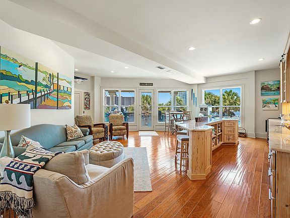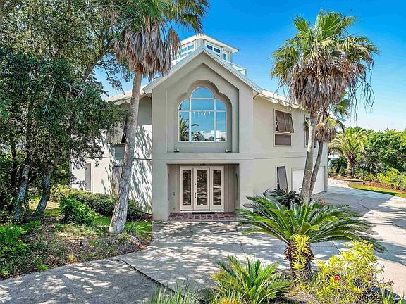 Welcome to private Ono Island! This beautiful waterfront home is located on Old River and has an incredible outdoor living space that will make you feel like you're at a resort! A lovely outdoor kitchen with a sink and a Green Egg and plenty of prep/counter space, a simply beautiful infinity edge pool with an integrated hot tub, travertine tile on the entire large pool deck, an outdoor shower, new pier leading to a boathouse with two slips and quick access to the Gulf...what more could you ask for? On the ground floor you will find a foyer, two guest bedrooms with ensuite baths, and a bar/lounge space that opens up to the outdoor kitchen and stunning pool area. There is a door that connects to the garage as well as storage on this level. On the 2nd floor you will find a kitchen/dining/living space with amazing views. The living room has a fireplace with great storage on either side. There is a guest room on this level that has a Jack-and-Jill bath that is shared with the living room. This is also where you will find the large primary suite. It includes the bedroom, bathroom with a jacuzzi tub, separate shower, double vanities and two walk-in closets. When you pass through the bathroom you will find a space that would make a great office or sitting room with another closet. Storage is no problem in this beautiful home! On the third floor you will find a cupola with simply incredible views that have to be seen to be believed. There is an elevator as well as fantastic storage throughout. This home is not to be missed! Schedule your appointment today!