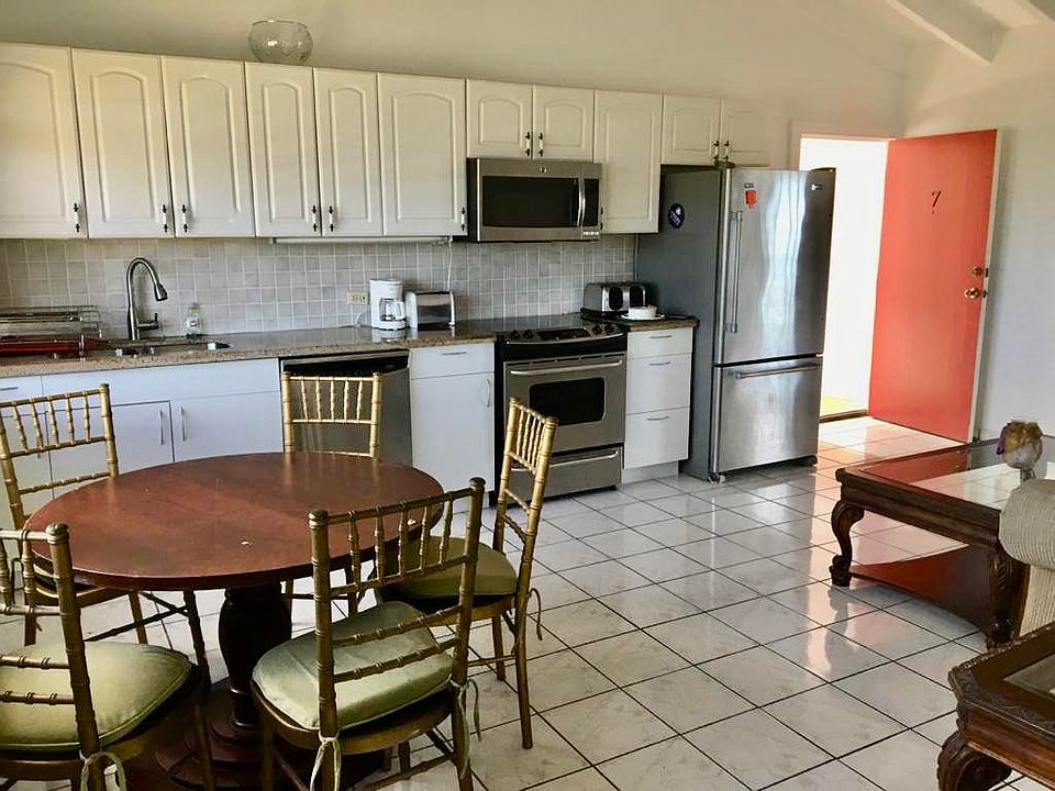 Available APRIL 2021! Fully furnished and updated 3 bedroom 3 bathroom apartment. It has an open floor plan with kitchen/dining/living room Bedrooms have on suite bathrooms and split unit ACs. Ocean views on both sides of the property. Beautiful compound with ample parking and coined washer and dryer on site. Utilities included water, electricity, and internet.