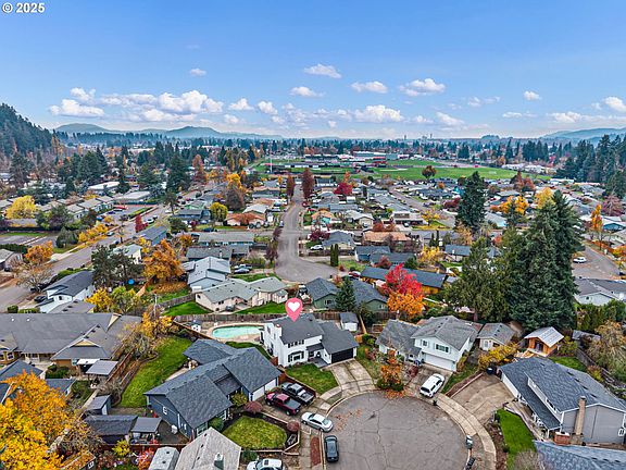 Located in a quiet Thurston cul-de-sac, this home offers a spacious living room with a statement brick fireplace and an adjoining dining area. The sunroom includes an eating bar, makes a great office space, and provides access to both fully fenced sections of the backyard. One section features an in-ground pool, fire pit, gardening area, and lawn space, while the other offers a hot tub, covered patio, and storage shed. Main level includes a half bath and one bedroom. Upstairs you'll find the primary suite with double closets - including a walk-in - and a remodeled ensuite with walk-in shower, plus two additional bedrooms and a full bath. Updates include newer LVP flooring, windows, roof, garage door, interior doors and trim, security system with cameras, and exterior paint (2022).