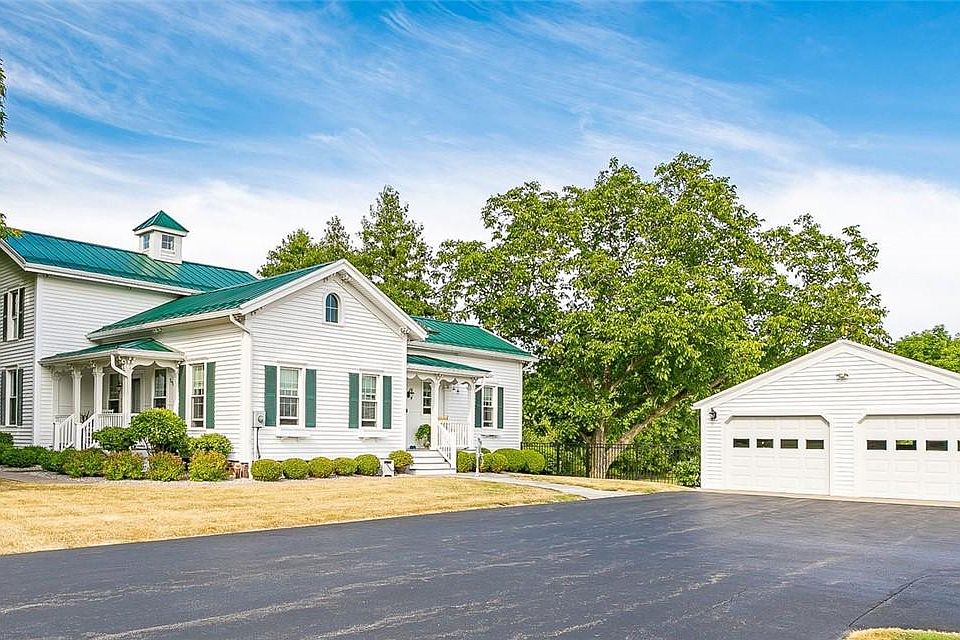 Meticulously maintained *SHOWSTOPPER* 1863 Historical home in the town of Webster prestigiously nestled on 9.2 acres of land! This home was completely rebuilt in 2009 with the highest quality, materials and workmanship. Gleaming 3/4 stained white oak solid hardwood floors throughout main living areas and bedrooms. Kitchen has 42 inch upper white cabinets w/ custom made crown molding & matching bead-board backsplash, granite counters, farm sink, ss appliances & pantry. Open layout living room/dining room has dramatic cathedral beamed ceilings with decorative corbels. 1st floor primary suite with large closets, a lavish bath with a huge walk in shower, and double pedestal sinks. Enjoy 1st floor laundry! Upper level bathroom has a claw foot tub. 2 huge walk-in closets in the basement. Great stone patio for outside entertaining. Hardscape surrounded by beautiful gardens. Glass block windows in the walkout basement. Rinnai tankless hot water tank. Large shed w/ electric & loft area. 50 year Metal roof! Don't miss this one-of-a-kind opportunity! No showings before 11am and no showings past 7pm. Delayed Negotiations August 29th, offers to be reviewed at 1pm. Ring doorbell on premises.