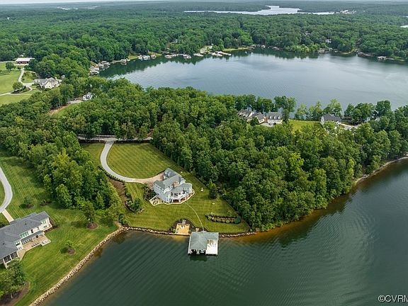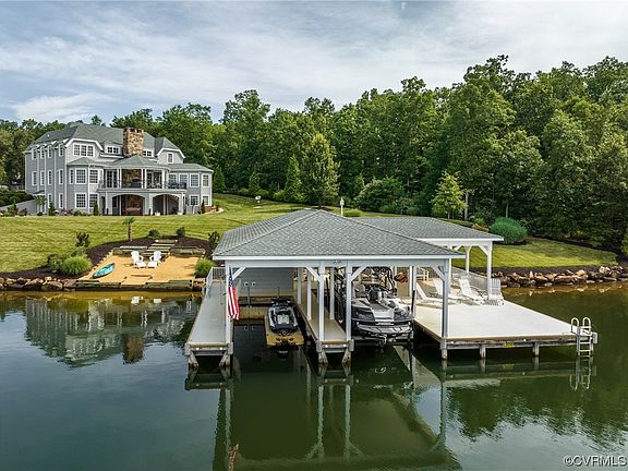 Stunning waterfront masterpiece offering rare opportunity at Lake Anna, VA. Truly unrivaled in quality & design, this paradise offers over 6,500 Sqft of lakeside living w/ 6 BDRMS, 5.5 BTHS, tremendous back deck, outdoor living area w/ stone fireplace & over 250ft of shoreline protected by boulder-sized stones. Bright open floor plan w/ soaring ceilings, exposed beams, massive stone fireplaces & reclaimed wood floors. Gourmet kitchen, SS appliances, gas stove, quartz counters, pendant lights, massive island & walk-in pantry. Primary BR on main level w/ access to deck, large walk-in closet & primary bath w/ stand alone tub, marble vanities & tile shower. Main level also has a half bath & laundry. Upstairs offers a 2nd primary suite, 2 additional BRs, full bath & loft. There is also a separate guest suite w/ a full bath on the 2nd level. Walkout basement has oversized stone fireplace, wood beam ceiling, custom bar, full bath & possible 6th BR. Gated community w High Speed Fiber Internet, no HOA. Lake-fed irrigation & 2.5 car garage. Generator, tankless water heaters, water filter/softener, surround sound throughout. Private sandy beach & massive two-slip boathouse. COMES FURNISHED!