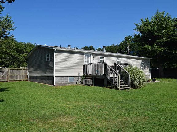 Updated windows, siding, carpet and kitchen cabinets. Paved parking in front. 24x50 2 car garage/ shop concrete block construction with bathroom in the back. Privacy fenced yard. Covered front deck. double wide on foundation