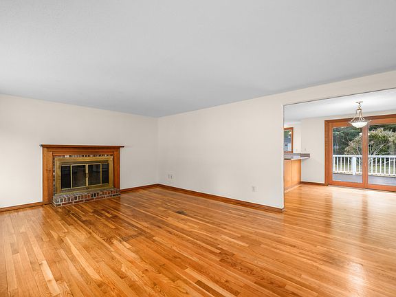Wood burning fireplaceHuge deckOversized family roomBreakfast barPartially finished basementHardwood flooringLarge backyard