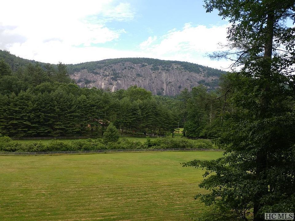 Incredible VIEW of Black Rock Mountain. The paved entry to property is stunning! Centennial Lane runs between pasture and meadow with back drop views of Black Rock, Sagee, and the Fodderstack Mountains. House is large enough for the whole family with 3 bedrooms and 4 baths. Master Suite on Main level, 2 guest bedrooms upstairs and a large bonus room above carport that can be utilized as a bunk room, studio or whatever space desired and has both indoor and outdoor entry. The large screened porch off dining room boasts awesome mountain views and a gorgeous wood burning rock fireplace. Lower level holds office, additional living space and a large temperature controlled 'Wine Room', with a 1,500+ capacity. Attached triple carport. Cul de sac turnaround makes for easy access and egress. Thanks to the forethought of conservation minded landowners, nearly 100 acres have been protected from development in the 'straight stretch' of 'Horse Cove'. Simply a treasure. A beautiful green treasure full of deer, turkey, and the occasional Moose! Horse Cove is a nature lovers playground, full of hiking trails and pristine rivers where you can fish, tube, or just sit and cool off. No matter how busy it gets in town....only a short drive on a beautiful road and your in the Cove, back in the mountains. Call your agent for showing. No drive-by please. *This property is a great value at a price that is $200,150. less than country assessed. Horse Cove has a caring and friendly neighborhood. It's a wonderful place to live.