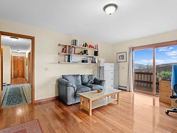 This rare gem combines stunning views, a prime location, vaulted ceilings, and generous space—all at an unbeatable price. From the attached two-car garage, step inside to discover a home designed to showcase its perch over the valley below. Large windows and glass doors along the southeastern side bathe the interior in light and frame breathtaking views of Camel’s Hump from nearly every room. The spacious, open kitchen flows into the dining area, where sliding doors lead to an expansive deck—perfect for indoor-outdoor gatherings in warmer months. In winter, cozy up in the sunken living room, which features maple floors, vaulted Douglas fir ceilings, and a wood stove with a striking stone surround. This level also includes two bedrooms, a three-quarter bath, laundry, and a flexible office/entry space. Upstairs, the primary suite offers peaceful separation from the main living areas. It features maple floors, Brazilian cherry trim, a large walk-in closet, an ensuite bath with a double vanity and soaking tub, and a balcony to greet the morning light. The walkout basement includes two versatile finished spaces ideal for a home gym, media room, or bonus area, plus ample storage and a utility room. Outside, the backyard provides flat areas for play or relaxation before sloping away to reveal those unparalleled views. This home combines architectural charm with natural beauty—a true must-see!