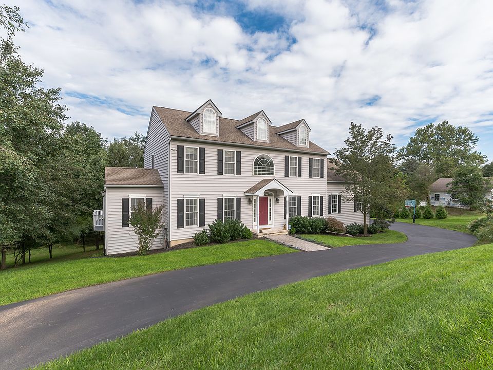 This beautifully well maintained home situated on 2.43 park like acres is Suburban Living at its best! As you walk into the 2 story entry way natural sunlight is present through out. The kitchen has stunning white cabinets, granite counter tops with glass tiled back splash along with top of the line appliances. Kitchen was featured in 2012 QVC holiday promotions. The eat in kitchen flows into the F/R with sliding doors lead to spacious deck. From the F/R you lead into a charming living room, an inviting dining room PLUS a first floor office. The 2nd flr. consist of three over sized rooms that share a large bathroom with double bowl sinks. The master suite has walk in closets,a vaulted ceiling, work out room and a laundry room that has plenty of storage for your clothing baskets. The mstr bathroom is inspired by a 5 star resort, Rivera Maya which features quartz counter top, Mexican tile floor w/radiant heat, a walk in shower with double heads and a jetted tub. There is a walk out basement with a theater room (all features included), a game room and dry bar for all your entertaining needs. All this is situated on 2.43 acres providing privacy and plenty of room for outdoor fun.