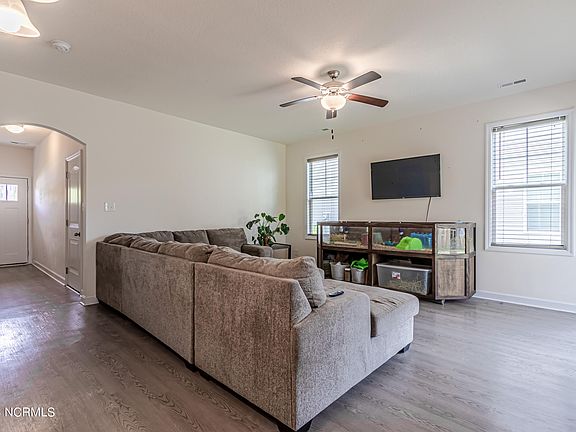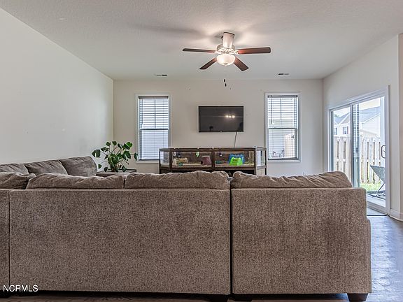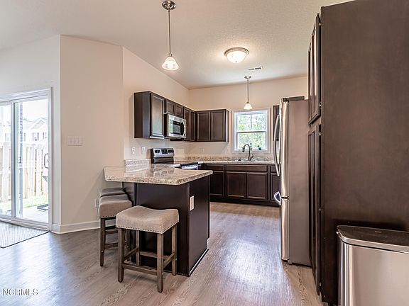 Introducing an exceptional townhome for sale in Holly Ridge, NC! This stunning residence offers a perfect blend of style, comfort, and convenience. Prepare to be impressed by the modern features and impeccable design of this 3 bedroom, 2.5 bath townhome with an open-concept layout. The inviting living area provides a cozy ambiance, perfect for relaxation and entertaining. The beautifully designed kitchen with sleek countertops and stainless-steel appliances, that include refrigerator, smooth top stove, built-in microwave, and garbage disposal has ample storage, makes it a chef's delight. Enjoy the outdoors in your private, fenced backyard on the covered patio, a serene retreat for morning coffee or evening gatherings. The low-maintenance lifestyle of a townhome allows you to spend more time doing what you love. With three spacious bedrooms, including a luxurious owner's suite with a private en-suite bathroom that features dual sinks, a soaking tub, a separate shower, and large walk-in closet, this gem offers plenty of space for your comfort and privacy.
