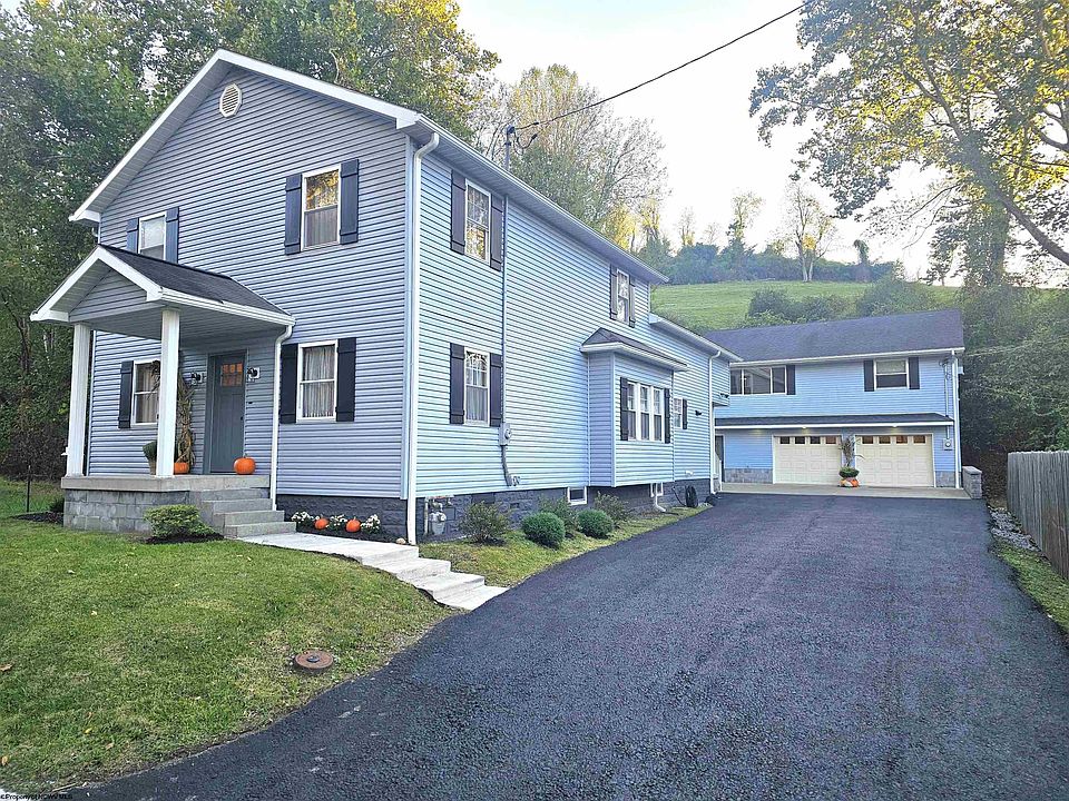Stunning 5-BR home w/spacious Garage Apartment – Updated & Move-in Ready! Nearly 3000 sf in this highly-updated and beautifully-maintained home featuring 5 bedrooms, 2 baths, 2 offices, and an oversized 2-stall garage with an impressive fully-equipped apartment above with 6th bedroom and 3rd bath. This "like-new" home offers attractive yard space, close proximity to I-79 from Exit 137, Pricketts Fort State Park, and also to Valley Falls State Park! View the long list of updates that have been made to the main home including new white quartz counters with beautifully-tiled backsplash, fixtures and SS appliances in the main kitchen; new commercial grade Limestone LVP flooring throughout both levels; complete renovation of both bathrooms; washer & dryer in the spacious main level laundry; all interior & exterior light fixtures & ceiling fans, new A/C. New wiring for an emergency generator was installed, all new shutters & exterior doors. The 25'6x19'6 living room features a prominent stone fireplace with new gas logs, flanked on both sides by charming bookshelves. The exceptional 18x8'6 kitchen features 42" oak cabinetry, large breakfast bar, and it is open to a charming dining room featuring large windows, window seats and a handsome staircase. The primary bedroom is on the main level, then 4 more on the upper level, each with a spacious closet. view one pristine room after another. The spacious apartment receives lots of natural light from multiple large windows. It includes a 2nd fully-equipped kitchen, which measures 19'x8'6 and includes a breakfast bar, pantry, laundry, and attractive white tiled floors. The 14'x8'6 adjacent dining room features tiled floors, access to the exterior balcony, and it is open to the 17x19 living room with large windows, and fabulous new Hickory floors that flow into the 6th bedroom, which has direct access to the 3rd bath. Updates since 2020 to the apartment include the heat pump, all shutters, side and rear stairs, new hickory floors, This home is "like new," conveniently located near I-79 and wonderful state parks, and the detached garage apartment offers income opportunities if desired.