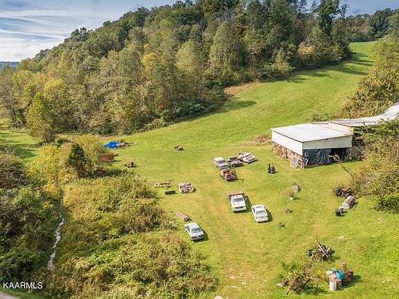 Huge development potential in Rocky Top. This unrestricted land could be used in so many ways. How about a campground or rv park? Maybe put up some cabins or tiny homes to rent on vrbo? Maybe a winery or wedding venue? The options are endless! Approximately 60 acres with county rd frontage and lots of great building sites and very close to I-75! Property also has an income producing cell phone tower. Items that will convey ; 2 or 3bdr home with basement and detached 2 car garage, huge barn, all farm equipment including multiple tractors, trucks etc . Gas,electric and water on site!! Make you dream of owning an income producing property a reality today!