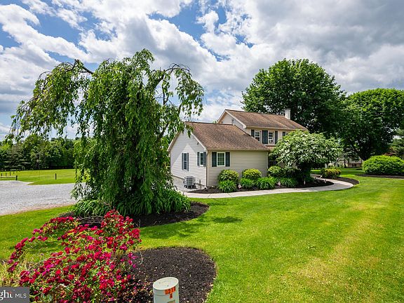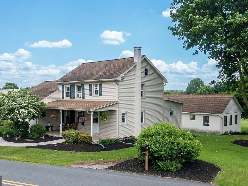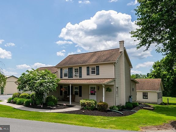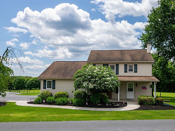 Step into the tranquil embrace of countryside living with this captivating farmhouse, nestled on over 4 acres of meticulously landscaped grounds in Penn Township within the Tulpehocken School District. This charming residence boasts 4 bedrooms, including a spacious main-level primary suite with an expansive en suite bathroom, ensuring comfort and convenience. Featuring 2.5 baths, main-floor laundry, and a cozy country eat-in kitchen, every aspect of daily life is effortlessly accommodated. The inviting living room provides a perfect space for relaxation and gatherings. Just three years ago, a new electric heat pump and central air were installed, enhancing modern comfort on the main level. Step outside onto the lovely hardscaped patio which is ideal for entertaining or simply unwinding amidst the picturesque surroundings. Outdoor enthusiasts will appreciate the 60' x 35' pole building, featuring four oversized garage doors, electric openers for two, parking for 6 cars, and electric hookup. The perfect car lovers dream! The property also includes an 11-stall stable with electric and water, alongside High Tensile 4-strand electric fenced pastures, making it perfect for equestrian pursuits. Contact Penn Twp for animal zoning. Additionally, there is an oversized workshop/shed/outbuilding for added versatility. Conveniently located near major highways, this move-in ready farmhouse offers a tranquil lifestyle without sacrificing connectivity. Schedule your personal tour today and discover the timeless allure of countryside living.