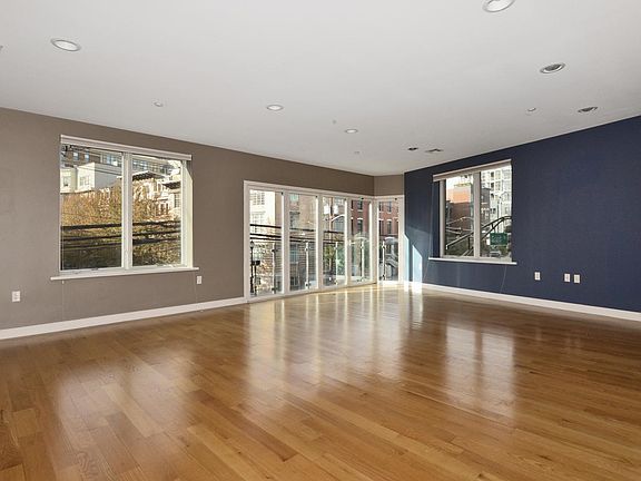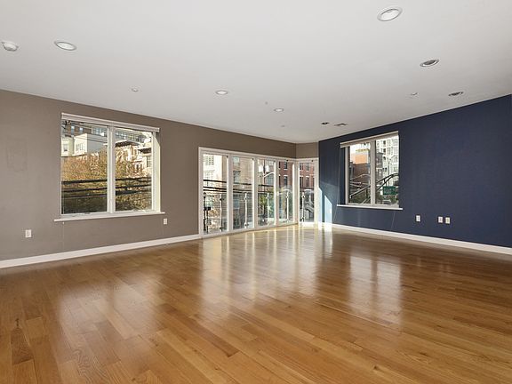 Van Vorst Park newer construction, steel & concrete contemporary elevator building in historic downtown Jersey City, located just a few short blocks from the Grove Street PATH. Wide open floor plan, all glass living room wall opens completely to bring the outdoors inside. Red oak wide-plank floors with Brazilian Cherry inlay. Chef's kitchen with granite counters and stainless steel appliances, central A/C, and custom tiled baths with Jacuzzi tub and steam shower. Parking across the street available starting at $160 per month. Must be seen to appreciate this awesome home.