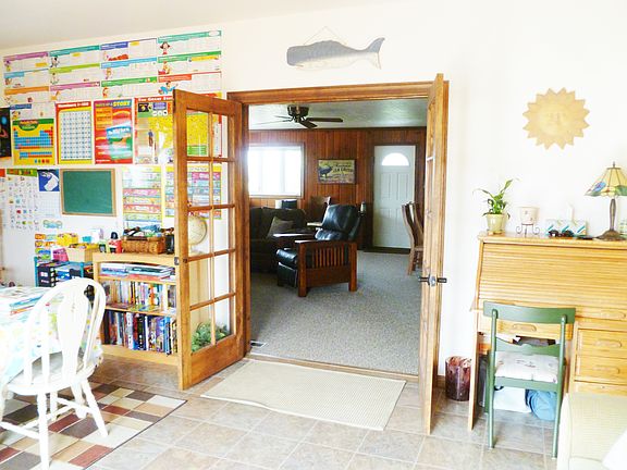This is a must see property! There have been many updates done to the home in the past year. This home is located outside of Malta, MT and is situated on 4.96 acres. There are 1724 sq. ft. on the main level and an additional 345 sq. ft. upstairs which would be a playroom/rec. room. The main living area has 3 bedrooms and 2 bathrooms with a nice new addition currently used as a study room. The bedroom are nice in size and the bathrooms have been updated this year as well. There is a full bath off of the master bedroom. The floor plan is nice and open with the newly remodeled kitchen open into the living and dining room. The kitchen has new Corian countertops and high end appliances. There is new carpet and paint throughout the home. The current owners have updates the septic with new pump and dual bobber, electronic pump failure alarm system and piping. The property is great for someone looking to have a few horses, the fencing has been updates dividing the property into three pastures and also has an automatic insulated/heated water tank. There is a small barn set up for chicken, a newly built 18x10 insulated green house with permanent foundation an automatic window openers and 3 raised beds.