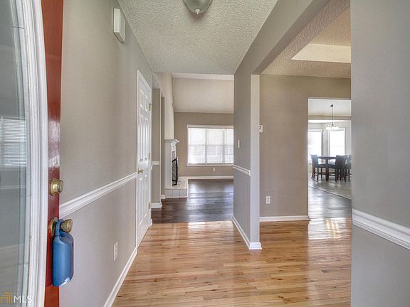 Open floor plan, hardwood floors in living area master bedroom, and formal dinning room, tile in bathrooms. Completely painted and move in ready. Rocking chair front porch. Full basement stubbed, completed electrical with breaker box and plumbing for bathroom. Property is fenced and additional concrete pads surround the in-ground salt water pool.