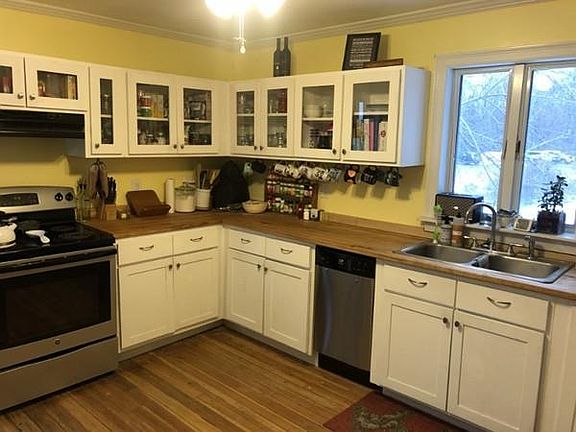 This well maintained and updated home has lots to offer! A great location convenient to all routes. Vinyl Siding, Replacement Windows and many recent updates including Electric (Knob & Tube Removed), Updated Kitchen with new cabinets and butcher-block counter tops, and added insulation for energy efficiency! All of this with a charming front porch and an over sized 2-Car Garage and large .72 Acre Lot make this home a great value!