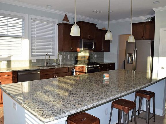 - Kitchen: Breakfast Bar, Work Island, Stainless Steel Apps., Granite Countertops