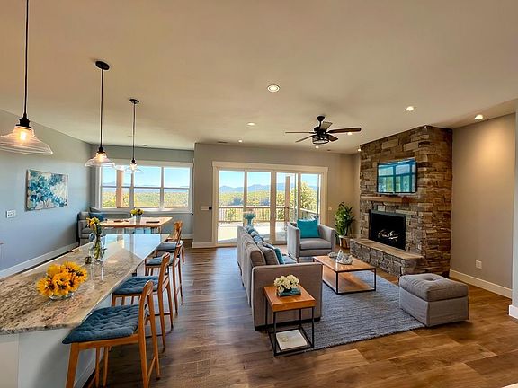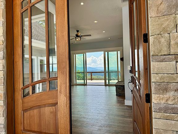 Experience the height of elegance in this stunning luxury home, nestled in the foothills of the Appalachian Mountains near Lake Chatuge. This home is located in The Groves, a gated community just minutes from Hayesville's nearby marinas, shopping, and more. This residence is conveniently located less than 2.5 hours north of Atlanta, blending tranquility with accessibility. Boasting 4 spacious bedrooms, 3.5 beautifully designed bathrooms, and a full finished basement, this home offers exceptional living space. The main floor features soaring 10-foot ceilings, 8-foot doors, and breathtaking long-range mountain views. The family room showcases an elegant stone gas fireplace, while the open kitchen is a chef's dream with GE stainless steel appliances, gas stove, granite countertops, and crisp white cabinets. A hot water pot filler faucet and a spacious pantry add to the kitchen's functionality. The primary suite, adorned with charming wood ceilings, includes a luxurious bath with double vanities and a zero entry shower. The large covered deck is perfect for taking in the stunning mountain landscape, whether you're relaxing or entertaining. The terrace level continues to impress with its own 10-foot ceilings, 8-foot doors and a wall of windows that flood the space with natural light. The terrace level features a cozy gas fireplace, a kitchenette with both a wine fridge and beverage fridge, a large game room, wine room, safe room, and ample storage space. Additionally, there is a versatile room that can be used as an office or additional guest space. Imagine a space with plenty of room for family & friends to gather. Additional highlights include a cherry wood front door, elegant garage doors with a quiet, chainless automated system, and a spacious 1-acre lot. This home seamlessly blends luxury, comfort, and natural beauty—making it the perfect mountain retreat.