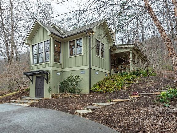 Located in the Three Creeks development of Lake Lure, 296 Kalmia Road was carefully designed by a noted Charleston architect to be part of the landscape. Beautiful architectural details throughout, you will feel like you are living in a refined treehouse. Enjoy the wood-burning fireplaces inside and out. Primary suite with walk-in closet, cathedral ceiling, cozy soaking tub, and travertine tile shower. The kitchen boasts polished concrete counters, gas range with plenty of prep space on the island or off the kitchen in the pantry/laundry room. Plus a dining area with surrounding windows. The upstairs offers an open sleeping loft bedroom, built-in desk, and full bathroom. Large patios and covered porches allow you to enjoy the outdoors all year long. Three Creeks offers carefully designed home sites to give owners privacy within the community. 4.5 miles of walking/hiking trails, two waterfalls, a pond for swimming and fishing, blueberry bushes, and three creeks. Welcome Home!