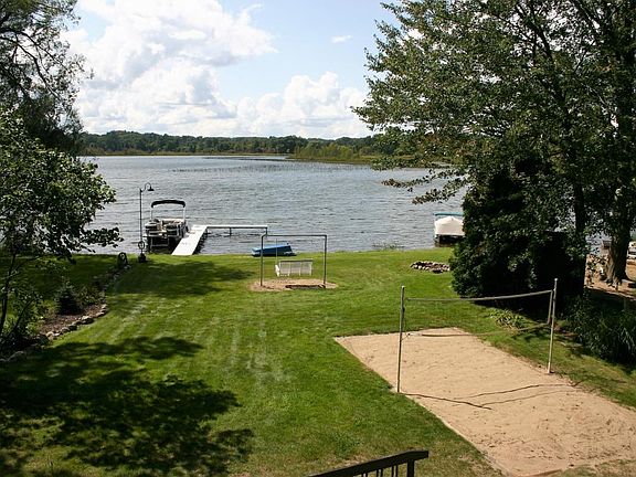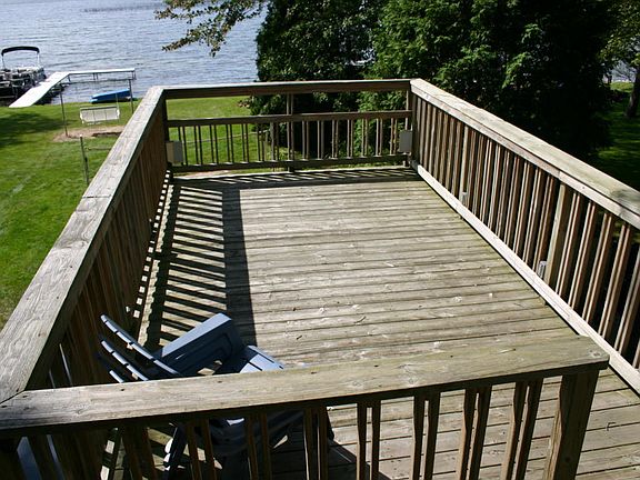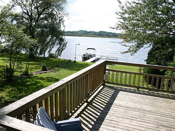 Spectacular Sunset Views! 50' of Guernsey Lake Frontage with 4 section of Aluminum Dock. 3 Bedroom/3 Bath Contemporary 2-Story Walkout Home with 2 Car Garage and Boat House/Storage Shed. Large multi-tier Deck, Volley Ball Court,and Fire Pit........ just bring your Family and Friends, and enjoy.
