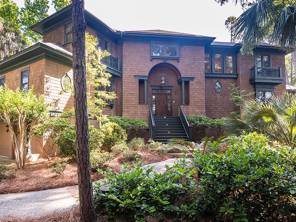 Featuring cedar shake siding and a newly installed roof, this partially furnished, 3-bedroom, 3.5-bath home blends seamlessly into its surroundings and feels miles away, yet the beach, championship golf, dining, and other world-class amenities are just a short walk or bike ride away. Thoughtfully planned and sited on a large, half-acre homesite, this home has abundant windows that frame long golf and lagoon views from nearly every room and an open floor plan that provides easy access to living, dining, and kitchen. A deck that spans the rear of the home accommodates a splash pool. The living room features a vaulted ceiling and a large picture window with second-story ellipticals that naturally brighten the space. Custom built-ins flank the central fireplace, and two French doors access the rear deck. The adjacent dining room opens into the kitchen and onto the rear screened porch via a pair of sliding glass doors. The generous kitchen offers ample storage and counter space, updated cabinetry with glass accent panels, a center island with cooktop, wine cooler, marble and tile countertops, and a pass-through breakfast bar with seating for three. A pair of French doors provide access to the screened porch for convenient outdoor dining. Located on the main level, the master suite enjoys natural light from numerous windows, a bath with a soaking tub, a walk-in shower, and dual vanities, and access to the study and rear deck. The adjoining study features a fireplace with custom built-ins and access to the rear deck. A winding stairwell is well lit by a variety of windows and leads to an upstairs landing area currently used as a reading nook. The upstairs balcony is open to the great room below and leads to two ensuite guest rooms, one of which is a second master that opens onto a private sundeck.