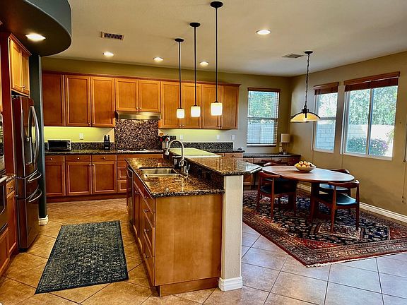 This beautiful, 3 Bedroom/ 3 Bathroom home is located in the desirable South Palm Desert gated community of Paseo Vista. Inside the front door is an open concept livingroom, dining room and gourmet kitchen. The kitchen has stainless steel appliances, gas stove, walk in pantry, and insta-hot water. There are lots of cabinets for storage as well as a laundry room with full size washer and dryer next to a 2 car garage with epoxy finished floors. Through the back door there is a nice size, low maintenance yard with a putting green and a beautiful sitting or play area. On the other side of the first floor is a full bathroom next to a nice sized bedroom.