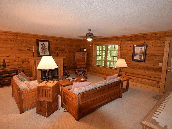 Very well maintained Southland Log cabin on secluded lot in Pinnacle Parkway. This 5.12 acre parcel is the second driveway on right going into Pinnacle subdivision. Cabin was featured in a 2017 HGTV Show about mountain cabin living!! This subdivision is has very nice mountain views and this property has nice winter time valley and distant mountain views. House sits about 100 yards back off the road with a gravel drive and an extra graveled parking area. Log cabin has very big covered front porch great for rocking chairs and relaxing. The interior of the cabin features a large open open with the kitchen, dining area and family area all in this main room. All appliances are included and the owners would also include ALL furnishings with an acceptable offer. There is a gas log fireplace in this main room also. There is a hallway full bathroom and two bedrooms. One of the bedrooms has a half bath attached. This washer/dryer area is at the end of the hall in front of the master bedroom. There is a back door that leads to a small covered deck for grilling and there is also a step down decked area for more space for relaxing or eating outside. This cabin was built in 1999 and has only been used a second home. It is in excellent condition and would make a great getaway or even a nice downsized retirement place. Pinnacle Parkway is a quiet peaceful community only about 10 miles from downtown Rutherfordton or 15 miles from Marion where the I-40 Interstate runs.