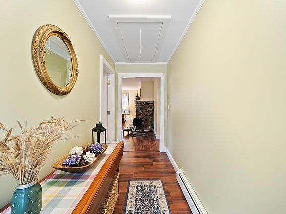 Escape to your private retreat on nearly 30 acres of wooded bliss. Follow the covered Bridge at Center Rd to the picturesque ride to Rowe Mountain Road, passing Battles Farm with its sprawling fields, horses, and cattle, all against a backdrop of majestic mountain views. As you approach your destination you will be delighted to see the Blitzer Easement Loop just across the road. This enviable neighbor is nearly 148 acres of conservation land, a tree farm and offers trails and adventure year round. However your own slice of heaven can be found in this fabulous Cape-style home, where looks may at first be deceiving. Upon entering you can see a meticulously maintained home with a flexible floor plan that boasts 5 bedrooms, 2 baths, with a barn-like addition off the back that adds character and functionality. The various rooms throughout provide the comfort of quiet spaces and answer the need for large gathering spaces. You'll find loads of natural light in all the first floor rooms creating a warm and inviting atmosphere with views of the beautiful wooded lot. The owners have lovingly updated many interior elements ensuring modern comforts and style throughout. This home is beautifully presented and ideally situated to maximize the benefits of the surrounding land. Embrace the serenity and possibilities of life in picturesque Bradford, NH