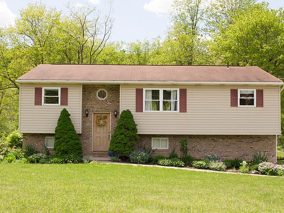 Perfect family home in beautiful, rural setting. Updates throughout including oak kitchen cabinets, neutral, corian counter tops, oak, hard wood floors spanning the entire main level, updated bathrooms with deep tubs and subway tile work, and a deck off of the kitchen. The finished basement features a welcoming family room as well an updated half bath and laundry room with a walk out to the patio, perfect for entertaining, which leads out to a spacious back yard overlooking a stream. The attached two car garage allows for plenty of storage space in addition to parking. Located in a family friendly neighborhood in the South Side school district just minutes away from Route 30 and the Pittsburgh International Airport. This home is ready for you to move in! Will consider realtor fees.