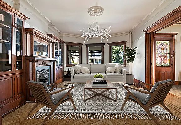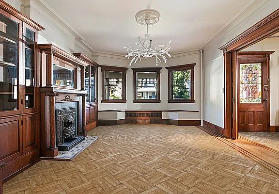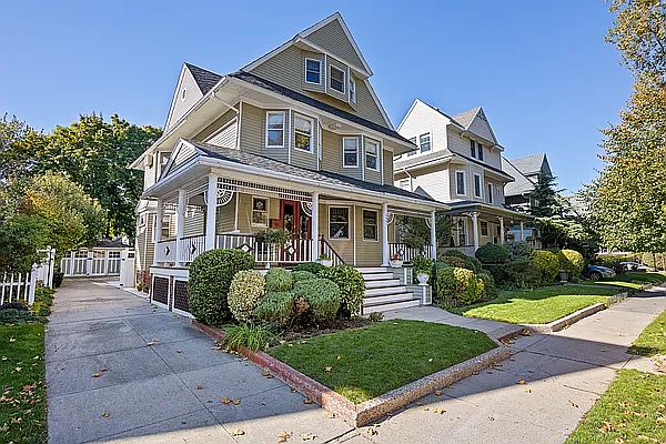 Beautiful and Enchanting 4+ bedroom, 3.5 bath Victorian on an over sized 50 x 135 foot lot with a Two Car Garage! This Ditmas Park Victorian home is on an oversized lot with a sprawling rear garden and two car garage! The perfect combination of magnificently preserved architectural detail and stunning updates, this immaculately maintained home has benefited from a master woodworker whose enhancements and restoration of the breathtaking original detail can be appreciated throughout. The impressive showcase of pristine detail includes Lovely custom glass front built-ins, pocket doors, plaster medallions, trellis, wainscoting, decorative mantels, custom closets and magnificent stained glass. The generous foyer with a cozy inglenook where you can sit and take off your shoes, leads to the large living room with a wall of bay windows looking out onto the tree lined street and a stunning formal dining room big enough for a table that seats 12. In between the living and dining rooms is a charming family room that can easily double as a den or office and towards the back of the house is a convenient powder room and the eat-in-kitchen. Kitchen features include custom, painted wood cabinetry, stainless steel appliances, granite countertops, an island with chairs for casual dining and a large walk-in pantry closet. Sliding glass doors fill the kitchen with natural light and open to a huge, shaded back deck with steps down to a sprawling backyard, perfect for entertaining outdoors, gardening or even a swimming pool! On the second floor there are three bedrooms and two baths. The bright, oversized Primary bedroom has a cozy seating area, two bays of windows with window seats, a custom walk-in closet and a newly renovated ensuite bath with a double vanity and a glass enclosed shower. The additional two bedrooms on this floor are large and light filled, both with great closet space, and the newly renovated second bath has a custom, light oak vanity and a glass enclosed shower with a rain shower head. On the lofty third floor is a large bedroom, another brand new bath with a glass enclosed shower/tub combo with a rain shower head, a sliding barn style door and great, versatile open space that can be used however your heart desires. The finished basement has a laundry room with built in cabinetry and countertops, a huge open space in addition to two large storage closets. The house is equipped with a central vacuum and in ground sprinkler system and the two car garage and generous driveway can accommodate 4-5 cars! All of this is just a short distance from the Q train to Manhattan, and the vibrant shopping and restaurants of Cortelyou Road.