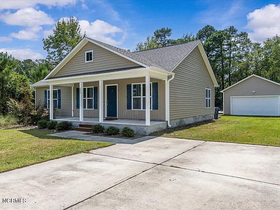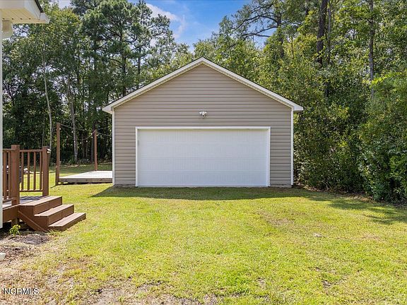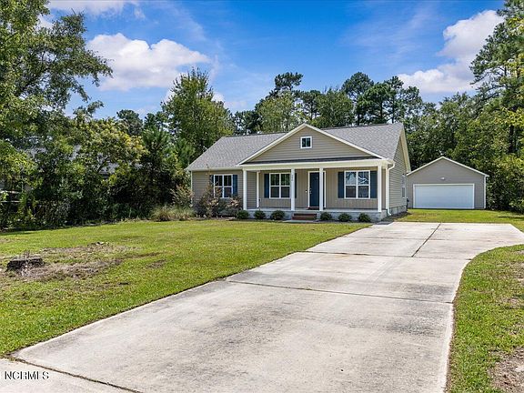Welcome to 296 Topsail Plantation Drive! Tucked away down a quiet street, this 3 bedroom 2 bathroom home was built in 2019 and sits on a large half acre lot. The backyard feels very private as it backs up to a mature treelined landscape. The front porch invites you right into the open floor plan living room and kitchen. Notable features include, granite counter tops stainless steel appliances, and LVP flooring. Samsung Washer and Dryer will be included in the sale. Ensuite bathroom in the master bedroom. Last but not least the two car detached garage is fully wired and provides a great space for additional storage. Located only about 10 mins from Topsail beached and 20 mins from Wilmington, this home is vacant and ready for its new owner to move in! Please note: The best way to get to the property is through the Topsail Greens Neighborhood. Access is available from hwy 17 but it is unpaved and will require 4x4 drive.