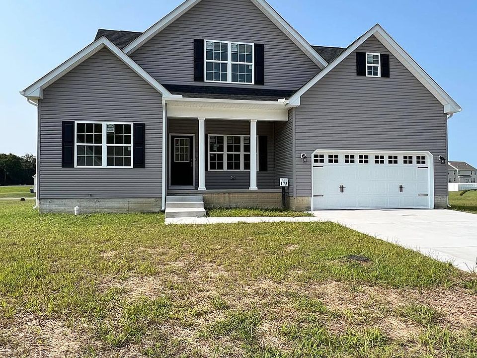 This new construction home is about to be complete. The Groveton model offers 4 bedrooms, three full baths, and a 5th finished bonus room above the garage that would make a great bedroom or office space. The primary bedroom and bathroom, and a second bedroom with a full bath are located on the first level. This home offers recessed lighting in the kitchen, upgraded soft close cabinets, stainless steel appliances (dishwasher, microwave, range) a pantry, tons of storage space, main level oversized laundry room, an eat-in kitchen with bar, separate formal dining room, a full unfinished basement, oversized two car garage, covered back porch and more! This community offers a walking trail and community pavilion. Get this on your must-see list today! Call the listing agent with any questions
