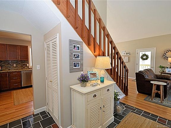 Natural lighting fills the interior of this Stunning Contemporary home with vaulted ceilings and two-story windows. Generous rooms and a perfect flow for entertaining or everyday living. Open foyer to the formal living & dining rooms as well as the 2nd story balcony area. New kitchen with all newer appliances, granite countertops, & bar area. Family room with stone fireplace and a slider to the deck and patio that extends the entire back of the house overlooking the large yard. Master bedroom with vaulted ceilings, slider to a private balcony deck, and divided full bath. Two upper bedrooms have sliders to the upper rear balcony deck. 4th Bedroom now being used as a home office. Oversized First floor laundry room with sink and convenient laundry chute from the upper level. All freshly painted, beautiful oak hardwood flooring, baths, and carpeting This is a must see for the Buyer that just wants just to Move In