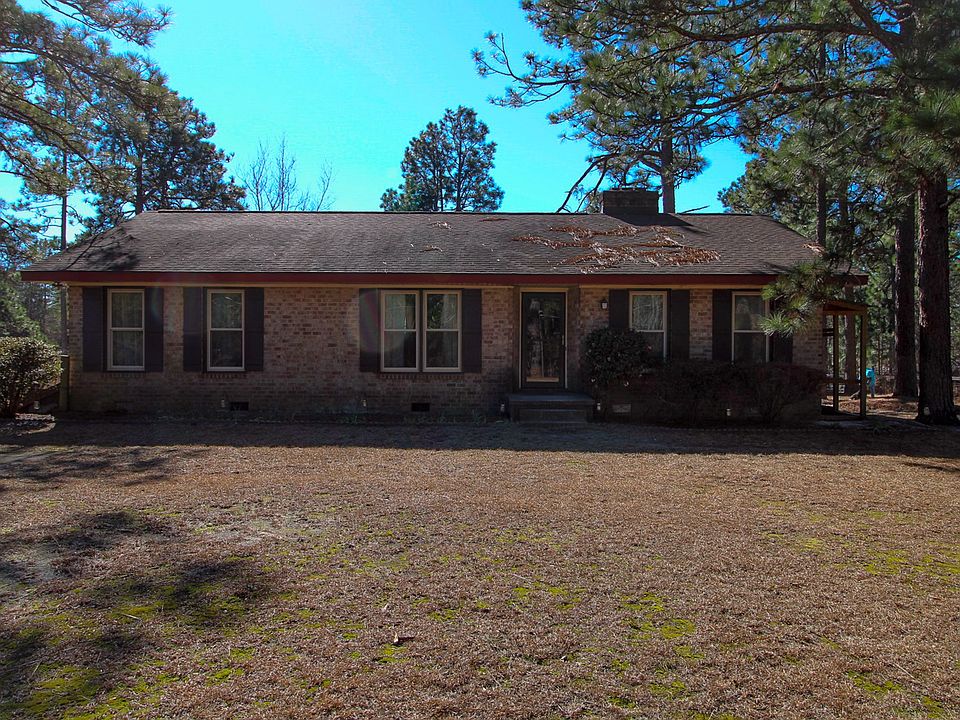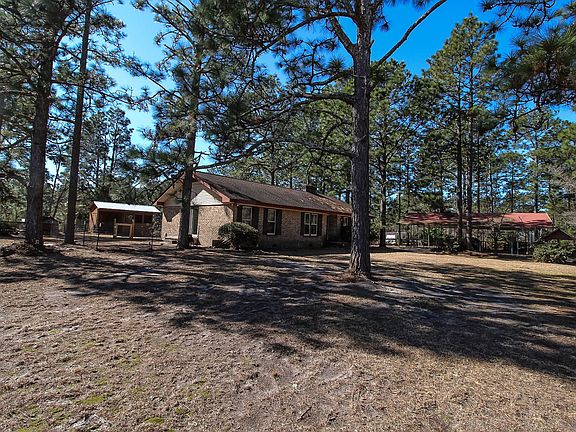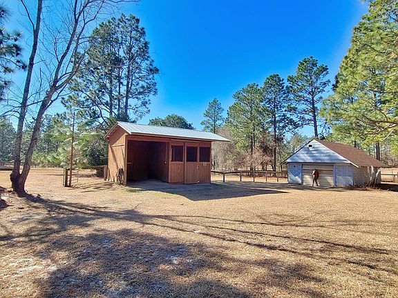 Great opportunity to own an affordable property property in Southern Pines Horse country. with access to the WMF. Situated just over 2 acres the property has a large pasture with well established grass and solid fencing, along with a 2 stall run in shed. In addition there is a cinder block detached garage/workshop that could have multiple uses. The 2 bed ranch house could use a few updates with aesthetics but has recently received new floors and windows throughout a larger than expected kitchen and dinning area. The master bedroom has a large bathroom and walk in cedar closet. This is a great opportunity for any that wants a little extra space and still close to town with an easy commute to Fort Bragg