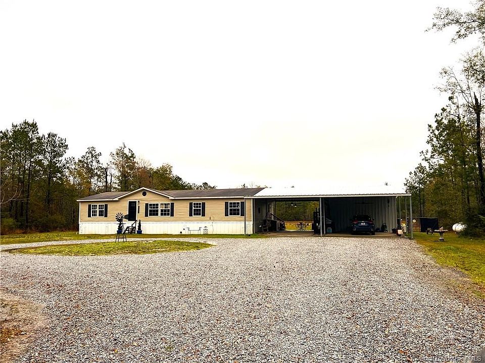 Beautiful secluded 7.8 Acres with a pond. Enjoy entertaining with friends and family in the large outside entertaining space. Home has 4 bedrooms, 2 baths, open split floor plan, large kitchen that includes an island and a built in hutch, with a separate dining area. Master bath includes double sinks, walk in shower and soaking tub. 2 car carport (1477 sq. ft.) with an attached workshop. (284 sq. ft.). New home generator to remain.